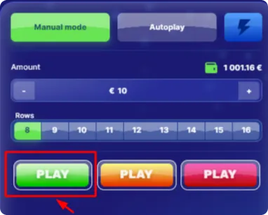 Uruchom grę i obserwuj przebieg rundy w Plinko. W zależności od wersji możesz wybrać poziom ryzyka: niski, średni lub wysoki. Wyższe ryzyko oznacza większy potencjalny zysk, ale mniej przewidywalne wyniki.